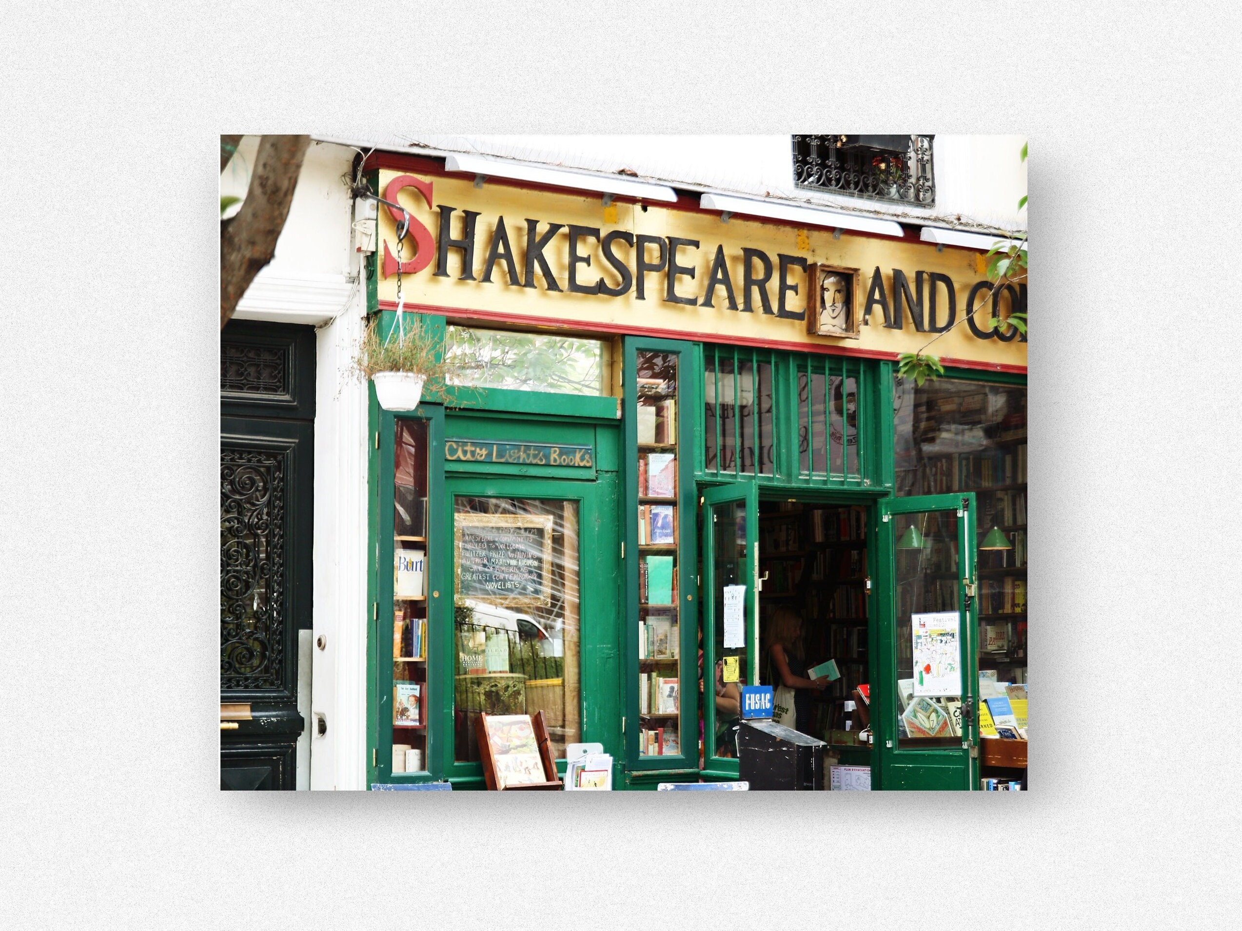 Wandering the streets of Paris Left Bank, one is bound to run across the iconic Shakespeare and Company book store. Relive your memories with this Shakespeare and Company photography print. The English language book store was opened in 1961 and evolved into a gathering place for the cultural and literary elite of bohemian Paris. This Paris print would make a wonderful gift for any lover of books or french culture.
