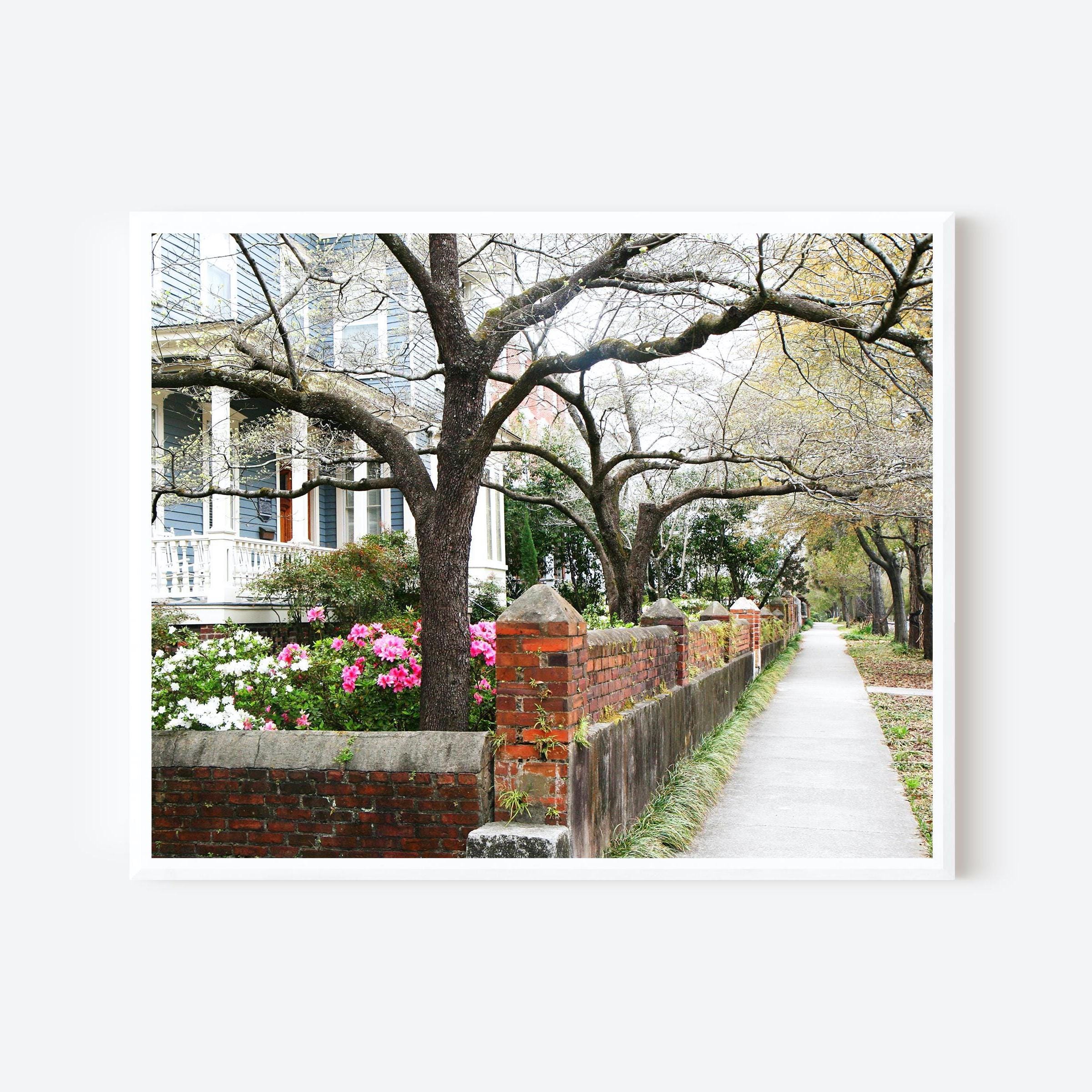 Step into the charm of a Southern spring with this Wilmington photography print, featuring a historic home, a red brick pathway, and azalea blooms bursting with color. Wilmington, North Carolina, offers a unique blend of coastal charm and rich history, reminiscent of Charleston and Savannah but with a character all its own. This print beautifully captures the essence of the South, lush greenery, timeless architecture, and quiet streets steeped in history. Whether you’re decorating a traditional home, a vintage-inspired space, or a cottage-style retreat, this piece brings warmth and nostalgia to your décor. Printed on premium photography paper, it ensures rich detail and lasting quality. Perfect for entryways, living rooms, and serene bedroom retreats, this print adds a touch of Southern grace to any space.