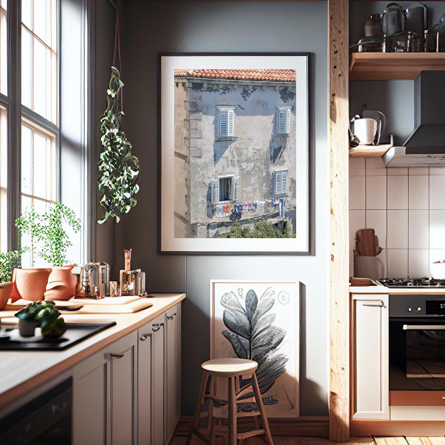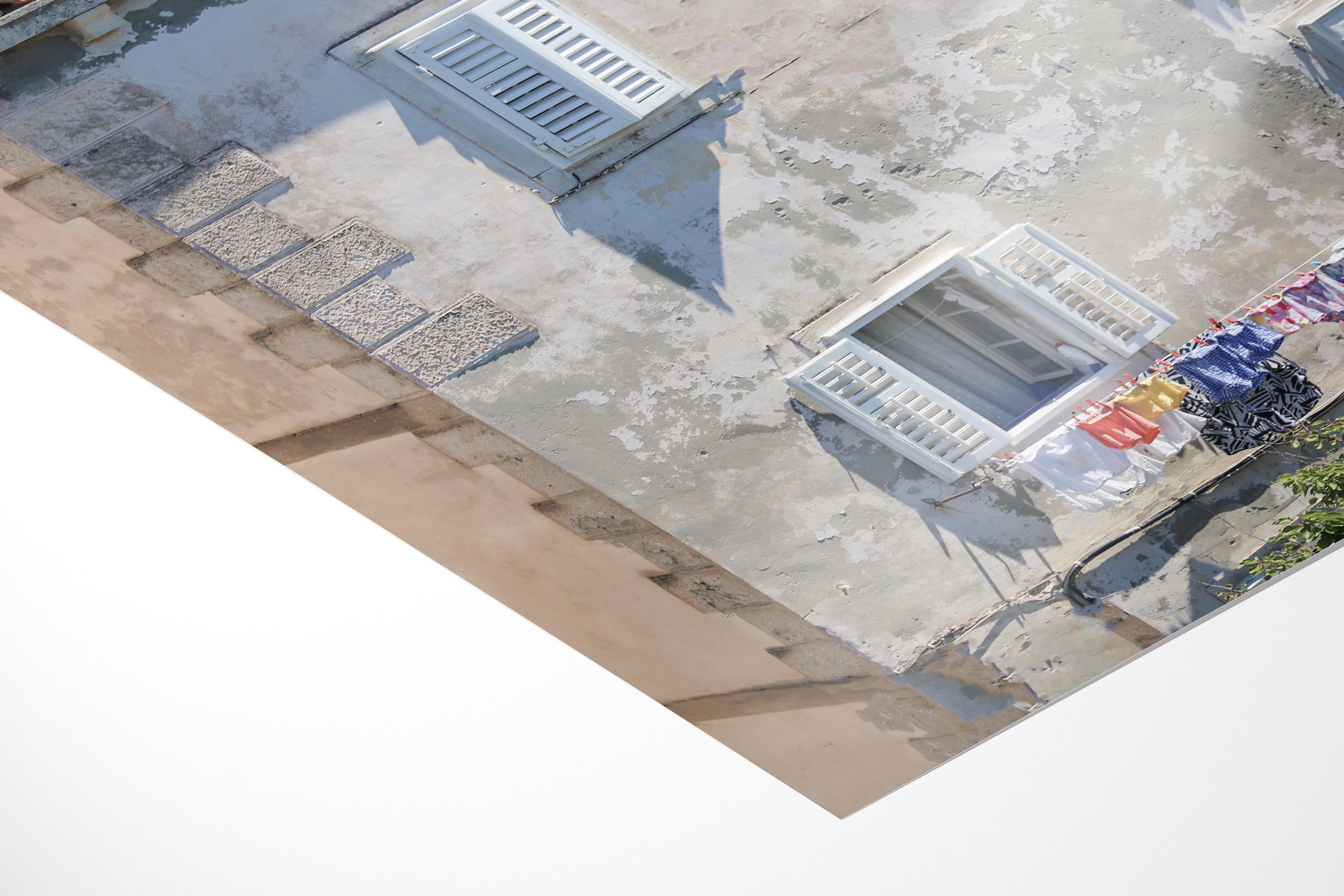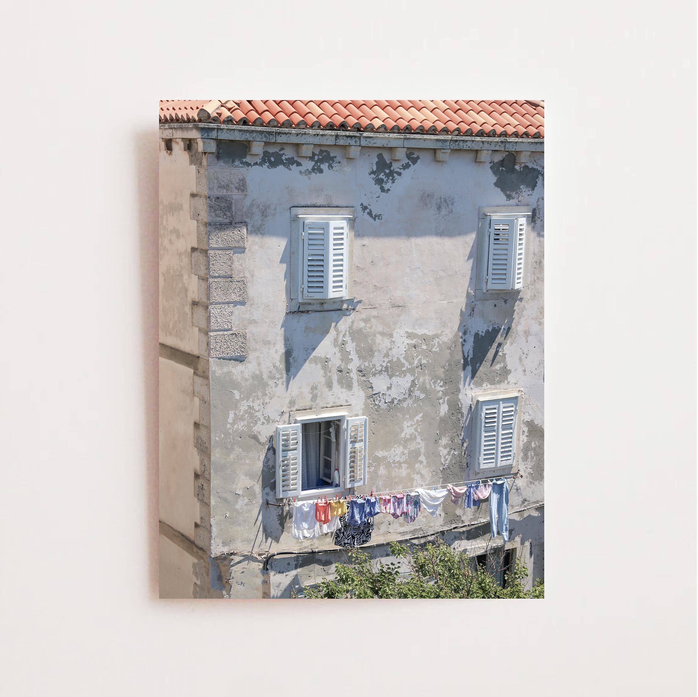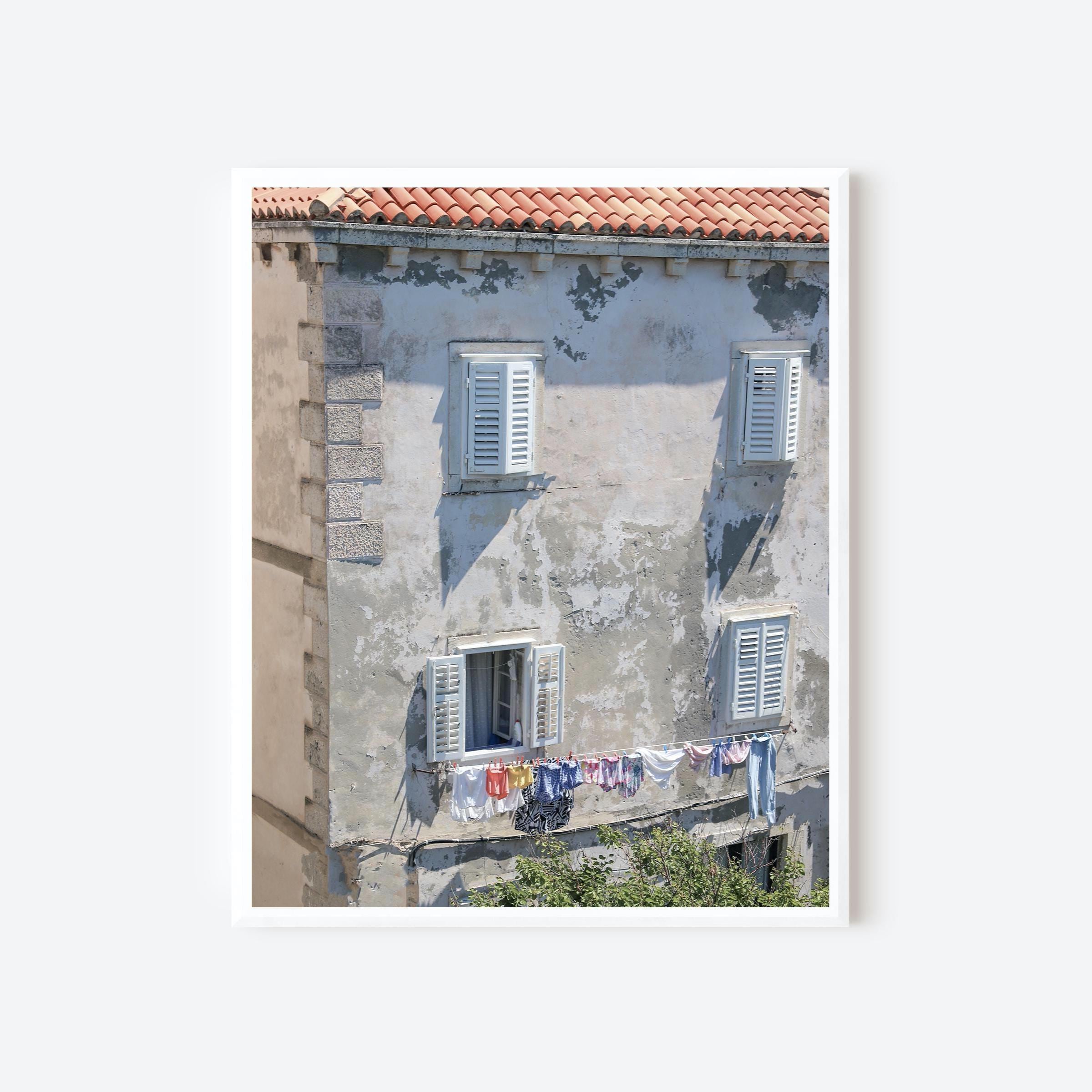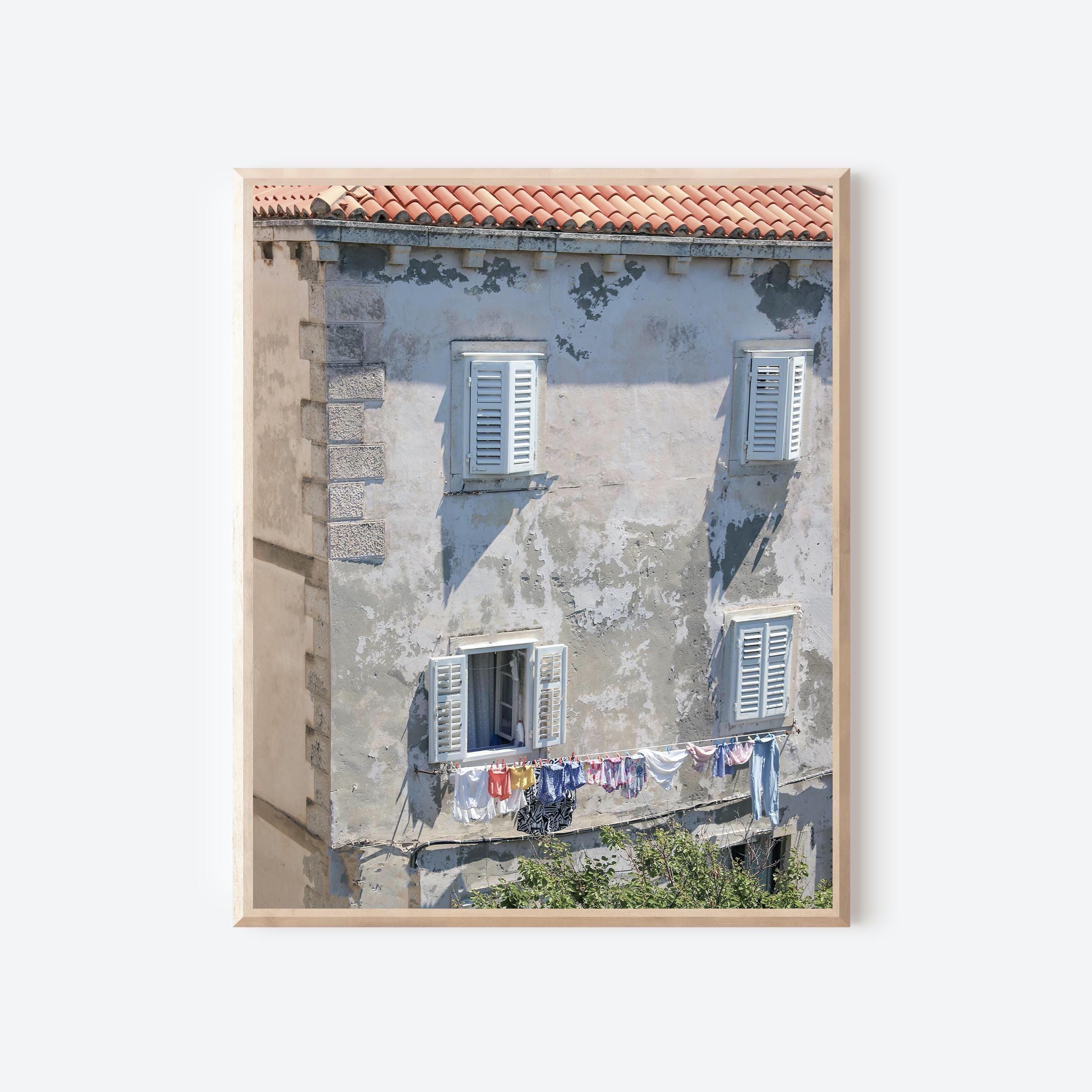 Captured in the heart of Dubrovnik’s old town, Shutters and Sunlight reveals the soft geometry and lived-in beauty of the Mediterranean. Faded stucco, painted shutters, and the rhythm of daily life are illuminated by the Adriatic sun, transforming an ordinary wall into something timeless.