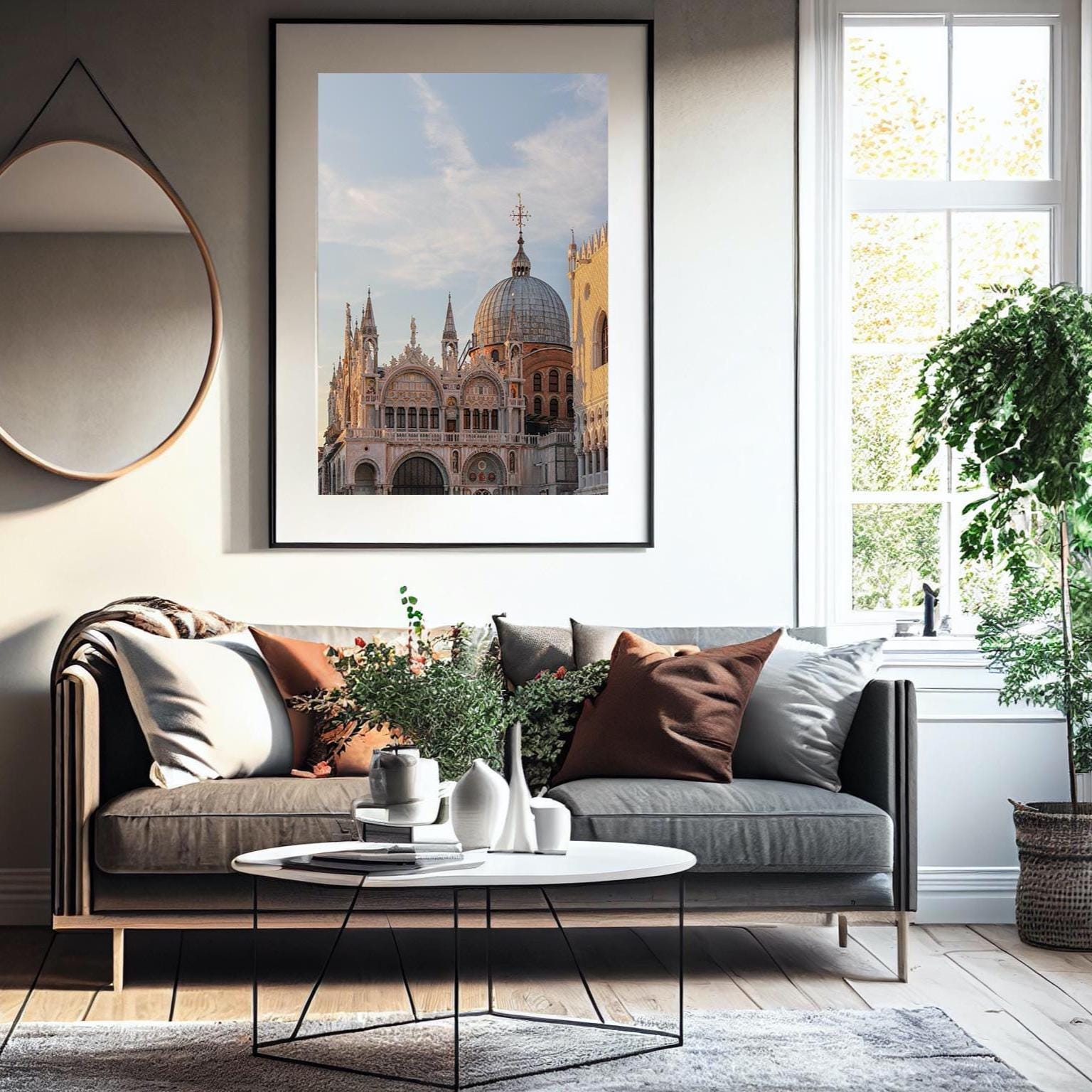 This print shines in rooms that blend warm neutrals, natural textures, and thoughtful architecture. The soft Venetian tones pair well with linen upholstery, walnut or oak accents, plaster walls, and layered neutrals. Hang it above a console in an entryway, over a bed for a serene focal point, or in a dining room where the sculptural details add depth and sophistication. A beautiful choice for anyone who wants art that feels worldly, elegant, and grounded in history.