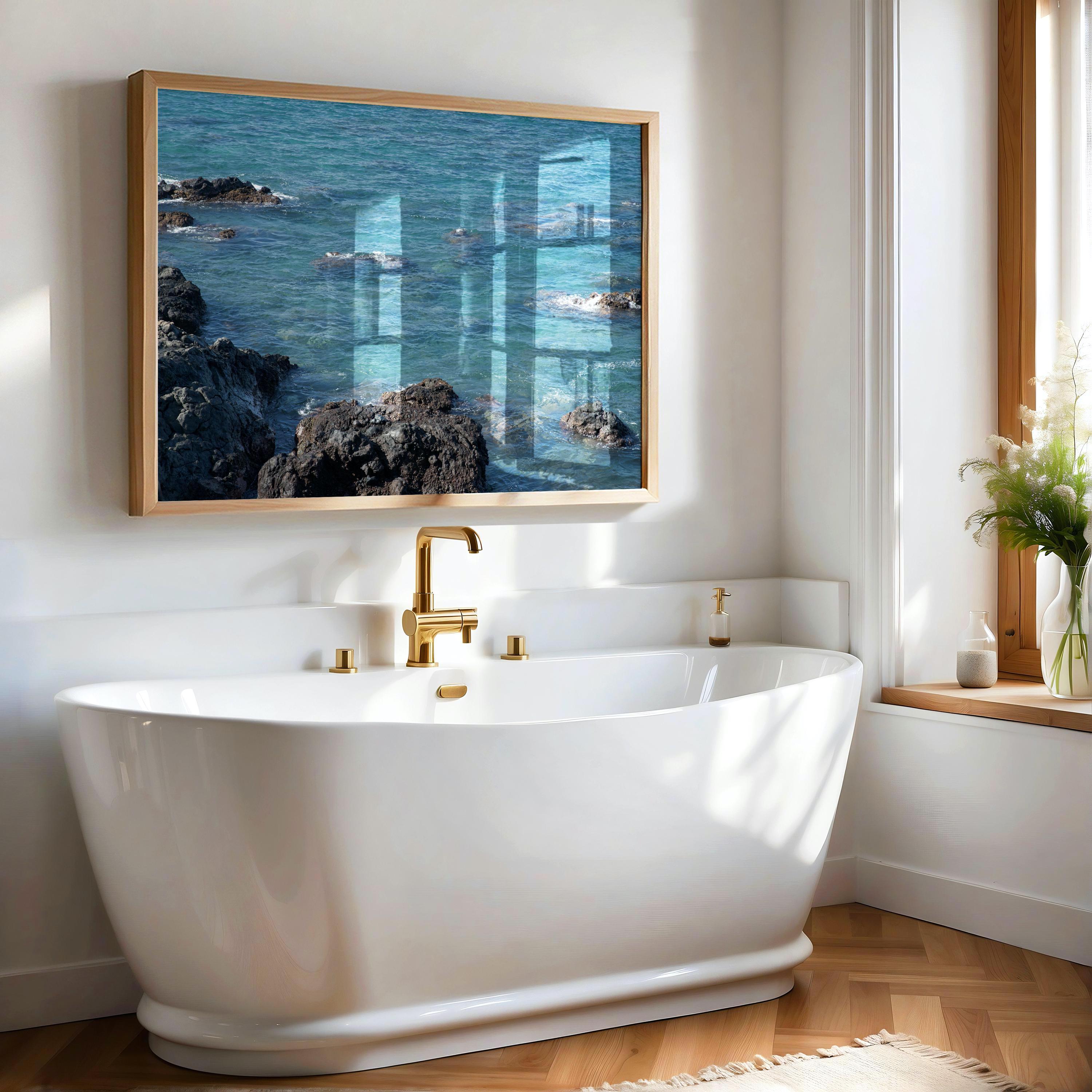 The result is a coastal piece that feels restrained and intentional rather than decorative. It brings a sense of calm through natural variation in tone and form, offering presence without overpowering a space. Printed on premium photography paper and refined with a light, painterly touch, this piece is designed to integrate seamlessly into interiors that favor balance, materiality, and understated detail.