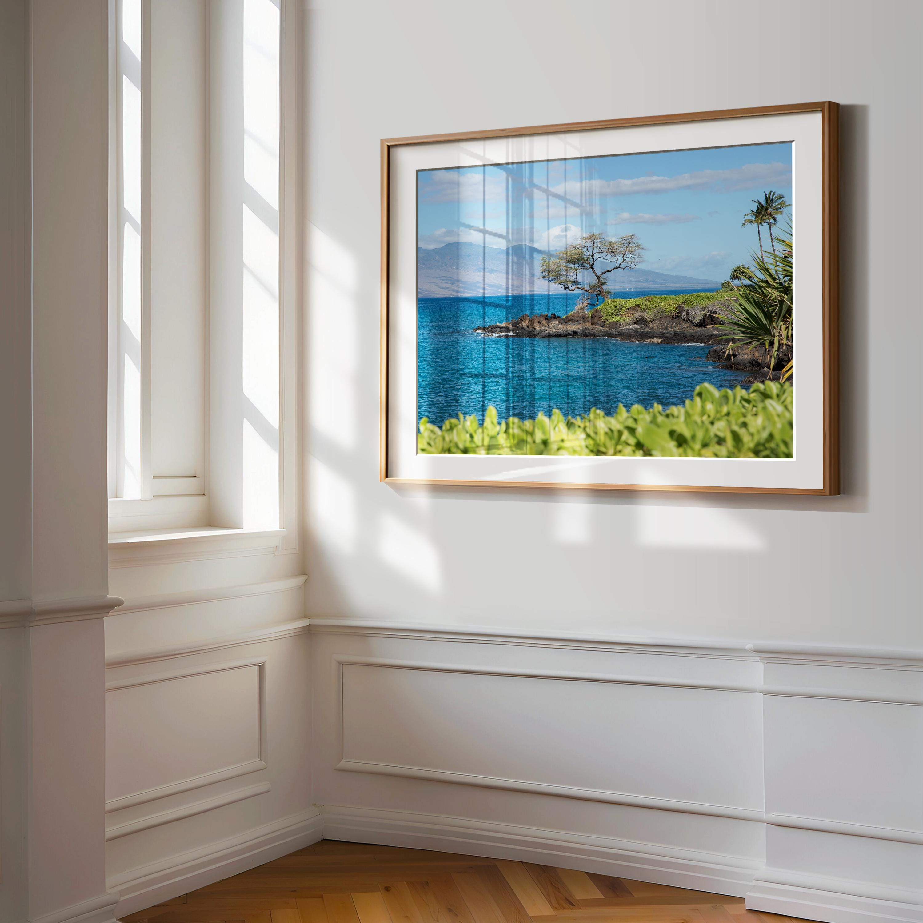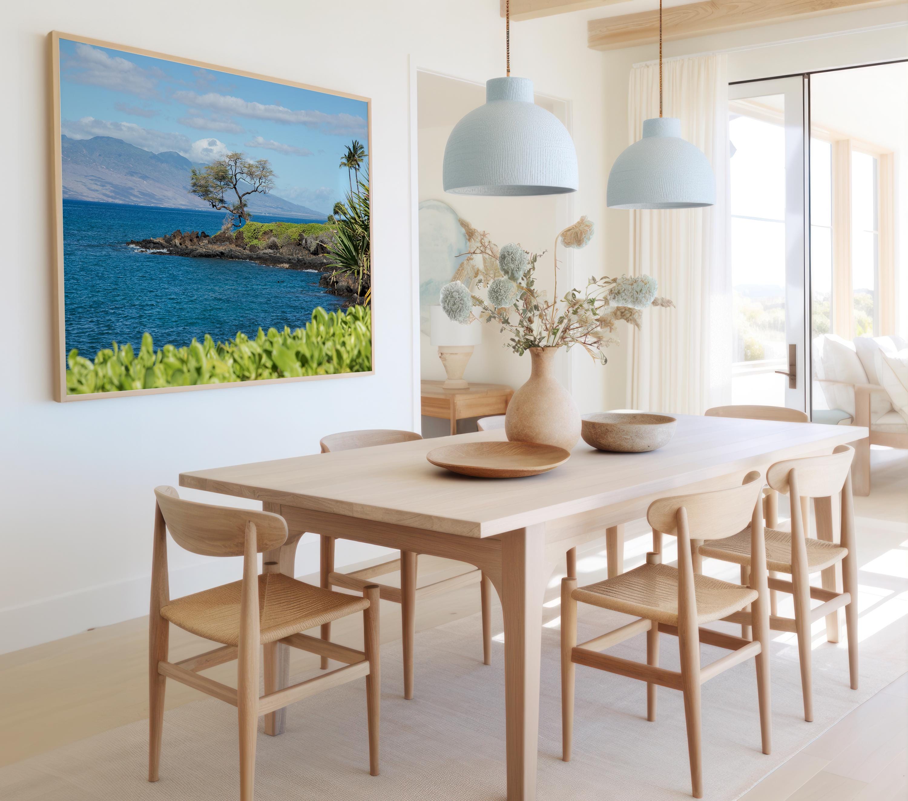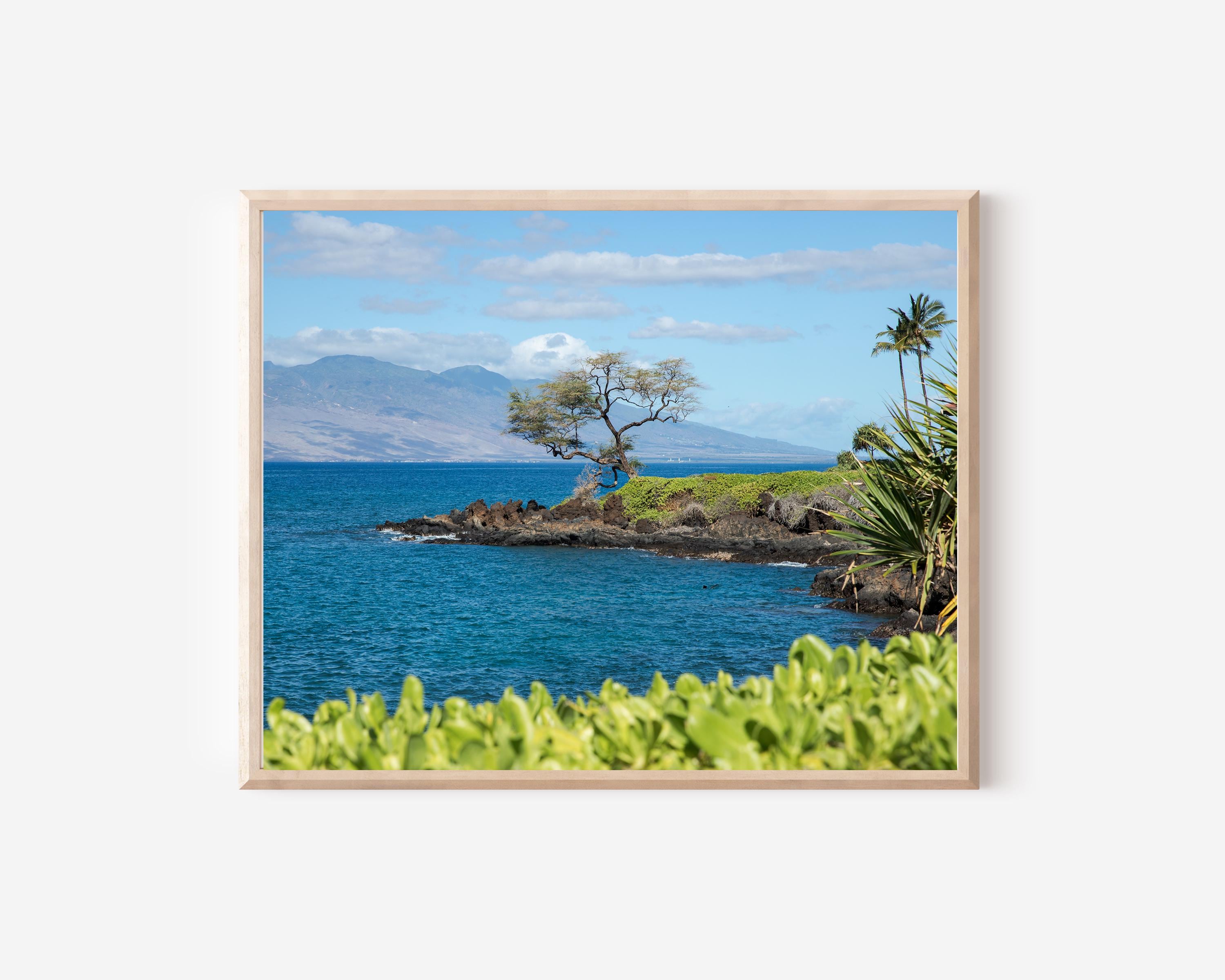 Captured along the coastline of Maui, this image is defined by balance—land, water, and horizon held in quiet alignment. A solitary tree anchors the composition while the ocean extends outward, creating a sense of openness without excess. The structure is simple, but intentional, allowing color, light, and form to carry the image.