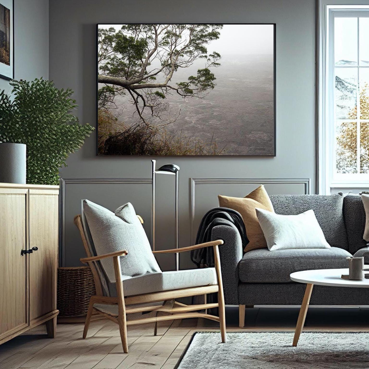 The image is defined by tonal restraint and negative space, drawing from the textures of cooled lava and shifting air. It is designed to sit quietly within a space, offering a sense of grounding and pause while maintaining a strong connection to place.
