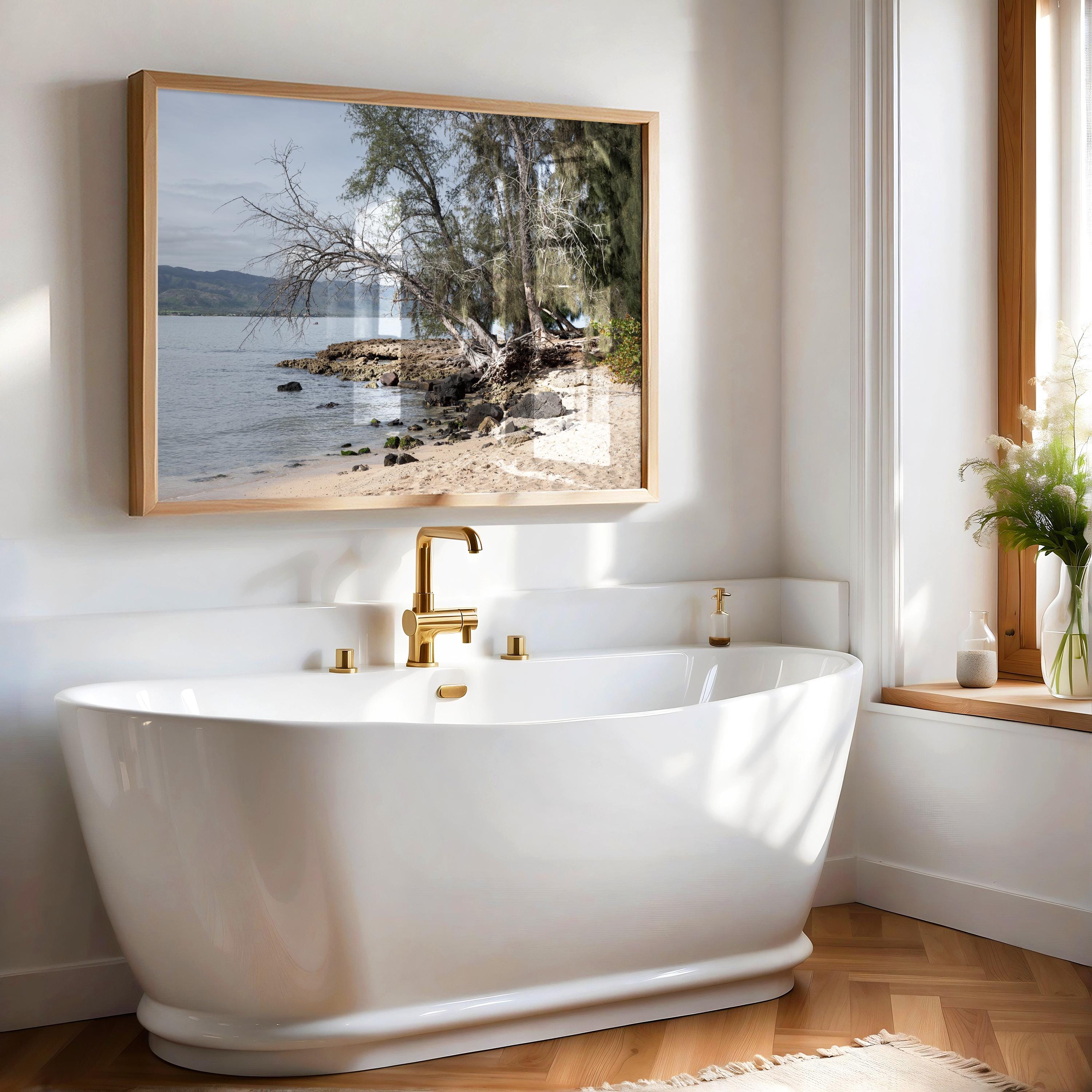 Captured along the north shore of Maui, Roots at the Shore explores the meeting point between stability and movement. Exposed roots stretch outward over the coastal edge, holding firm against water and time, while the landscape opens beyond.